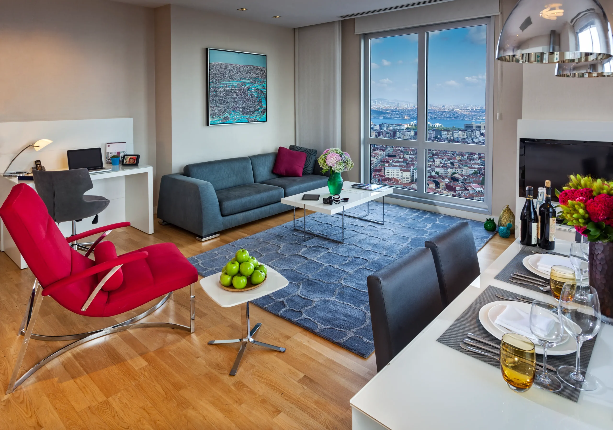С 15-го этажа открывается вид на Мраморное море, Принцевы острова и Золотой Рог, с 30-го этажа – вид на Босфор, а выше – на весь Стамбул. Anthill представляет собой проект с гибким и модульным принципом планирования, в дополнение к стандартной структуре, состоящей из двухкомнатных и трёхкомнатных квартир, квартиры могут быть объединены и, при желании, могут быть созданы различные типы квартир, включая шестикомнатные. Здания отвечают многим ожиданиям, располагают широким спектром интерьеров, отличным местоположением и видом.